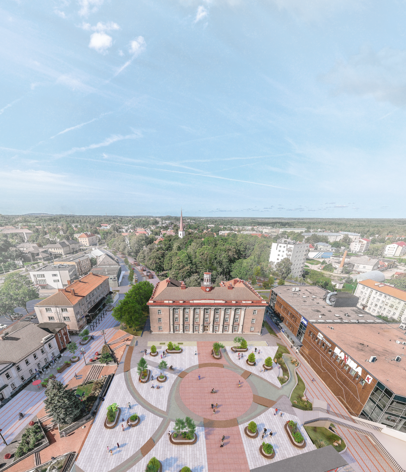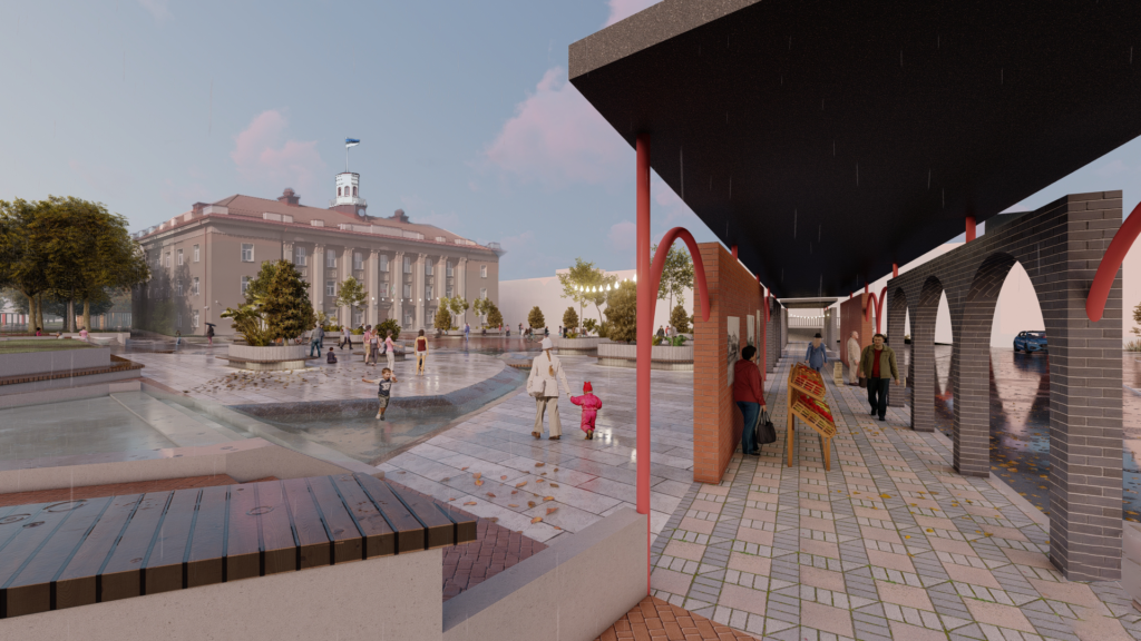 The concept “Allikas” (The Spring) aims to create a cohesive and contemporary urban space connecting Jõhvi’s central square and Mihkli Church. The design prioritizes human-centered public spaces, introducing new opportunities for active and inviting use. The proposal builds on the site’s existing qualities and potential, integrating new elements inspired by the city’s playful character and its symbolic link to the cranberry.