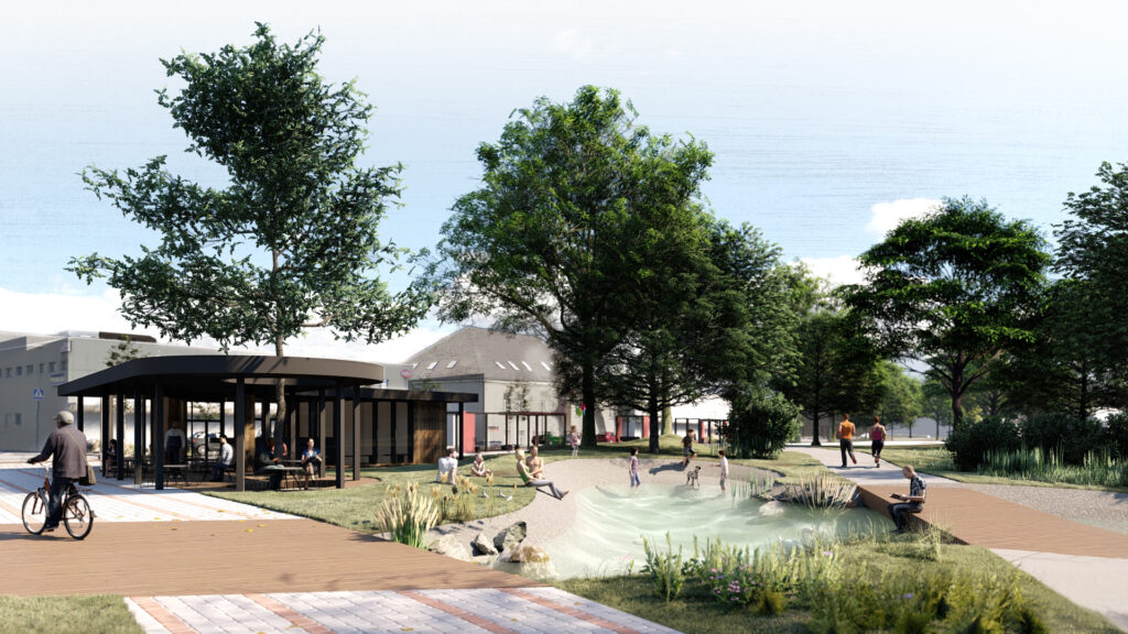 The spatial layout emphasizes accessibility and human scale. The central square is planned for more active and dynamic use, while the adjacent park provides a calmer, more intimate space for relaxation. Two strong axes — the Rakvere side promenade and the link between Tsentraal and the former lemonade factory — tie the square and park into a single, harmonious environment. Along the park’s perimeter, new water features manage stormwater runoff while referencing the historic spring that gave birth to the town of Jõhvi.